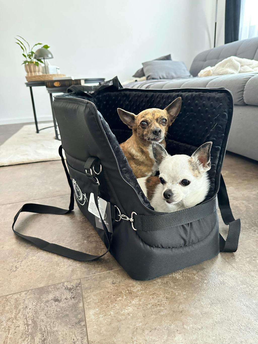 Besonders Welpen und junge Hunde neigen dazu, an Reißverschlüssen, Nähten oder Netzbereichen zu knabbern. Diese Teile sind nicht für dauerhaftes Kauen ausgelegt. Lasse Deinen Hund niemals unbeaufsichtigt in der geschlossenen Tasche.