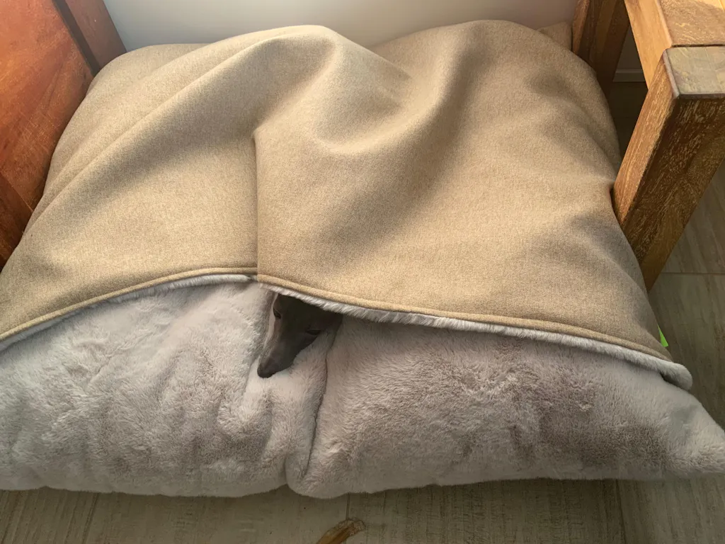- Größe XL: geeignet für Hunde ca. 8–15 kg (z. B. Whippet, Vizsla) – auch als gemeinsames Bett für zwei kleine Hunde