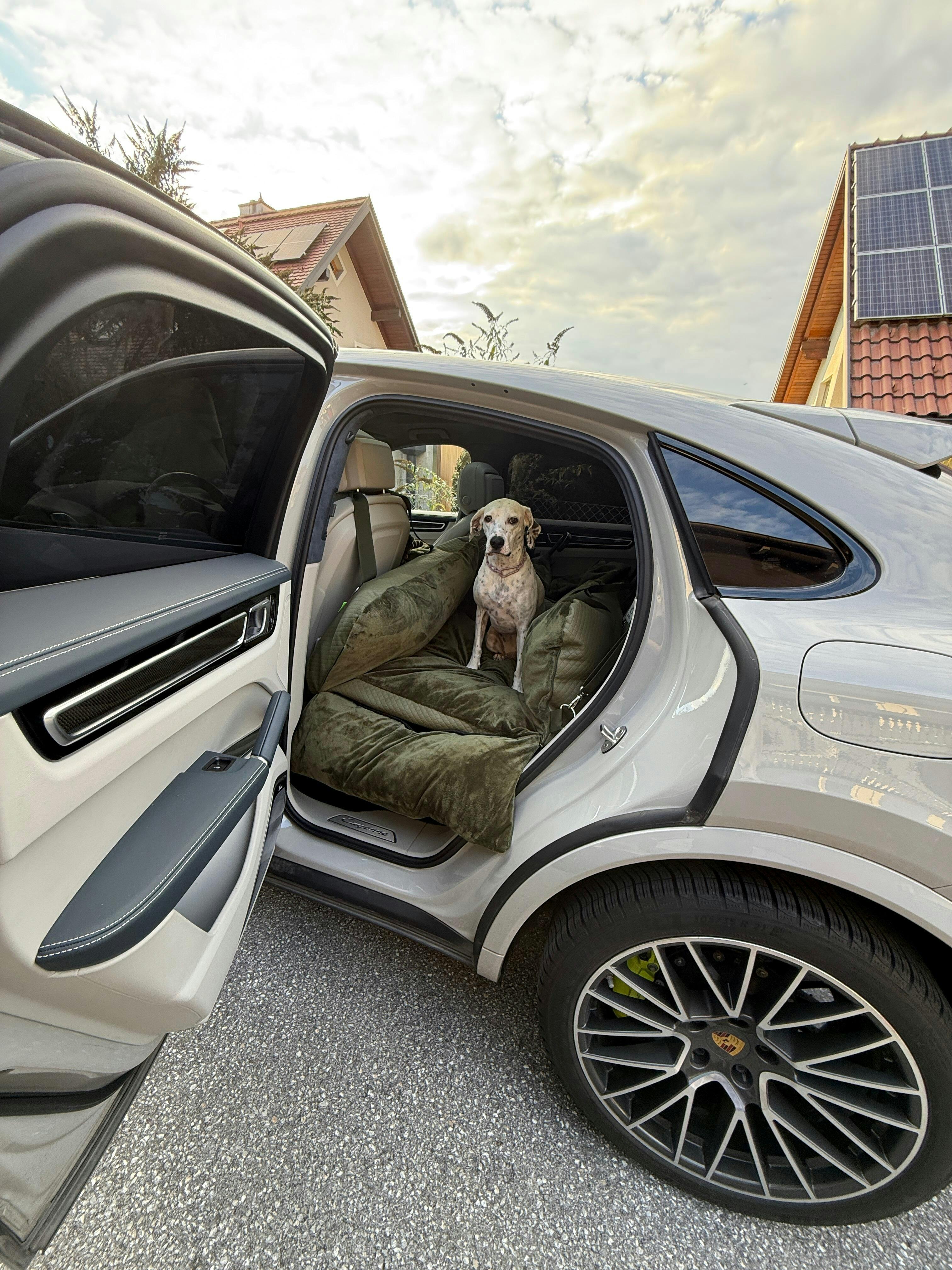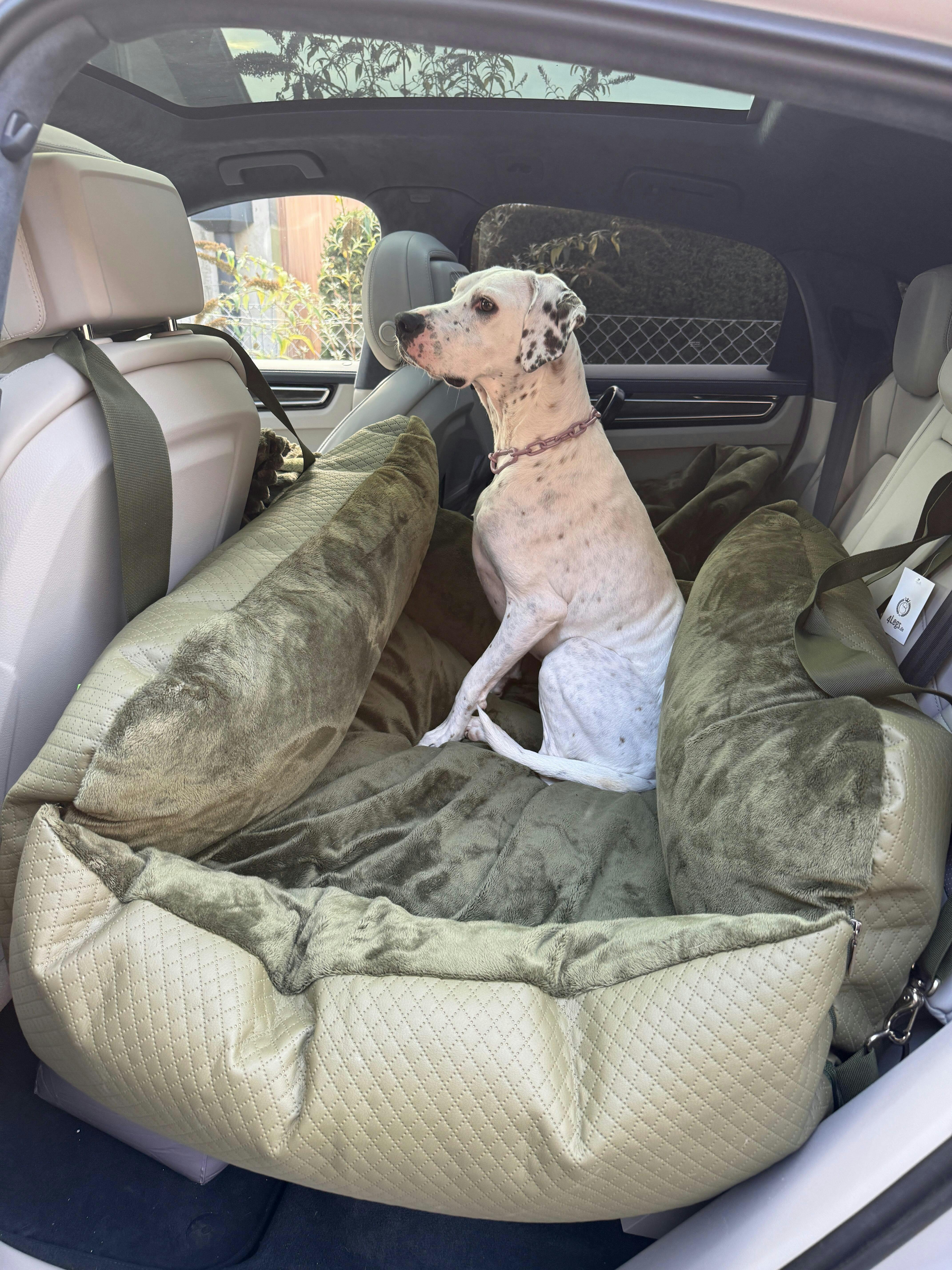 Es gibt außerdem drei integrierte Gurte in der Innenseite um Eure Lieblinge für die Autofahrt zu sichern - und natürlich einen um den Autositz für Hunde im Auto zu befestigen. Darüber hinaus, befindet sich eine Stofflasche durch die der Sicherheitsgurt gezogen werden kann. Zusätzlich habt Ihr auch noch die Möglichkeit dank der D-Ringe an diversen Stellen, den Gurt über die Nackenstütze zur Befestigung zu ziehen oder auch um die Rückenlehne zu legen. Dadurch ist das XXXL Reisebett für jede Situation gewappnet und daher auch ideal als treuer Urlaubsbegleiter - ob als Körbchen oder Autositz! Made by 4Legs.de.